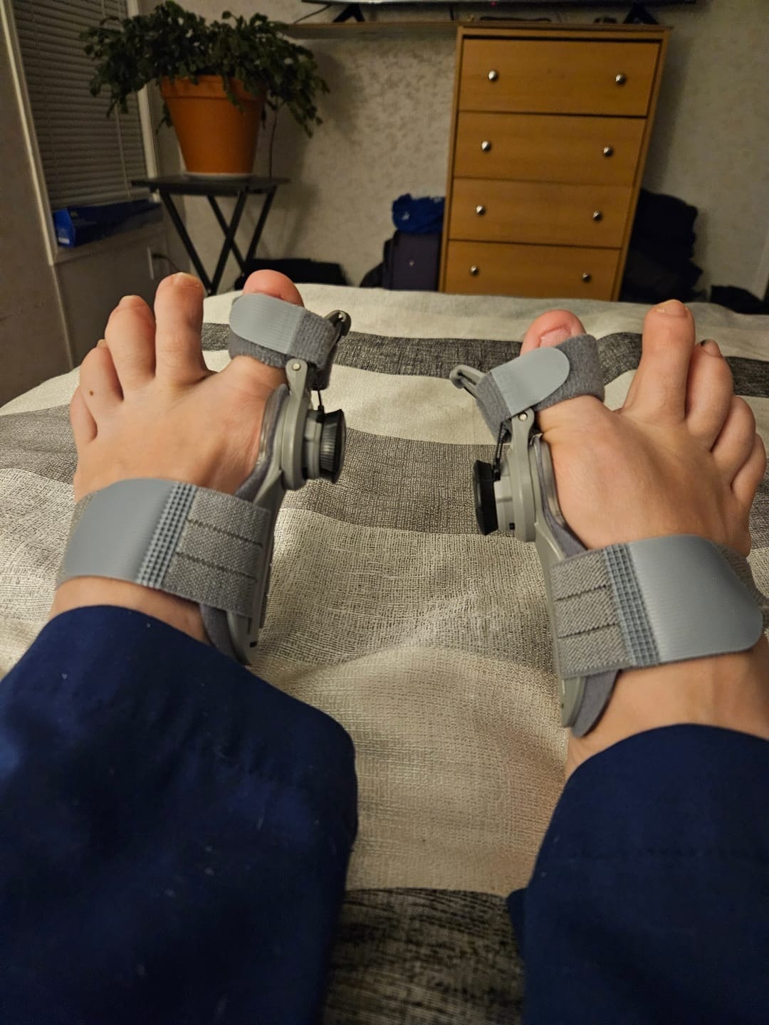 Este potrivit pentru utilizare atât ziua, cât și noaptea; se recomandă folosirea regulată pentru ameliorarea durerii și susținerea alinierii corecte a piciorului.